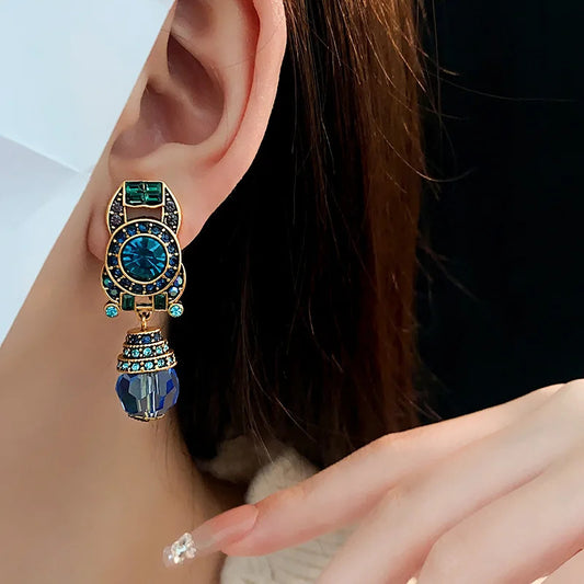 Boucle d'oreille clip femme | Cristal Vintage Bleu